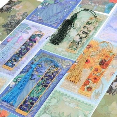 4 Metal Bookmarks with Tassels—Gold-Toned and Hollow-Out Design—Oil Painting Theme—For Book Lovers, Writers, Readers, Children, Teens, Men, Women, and Adults.