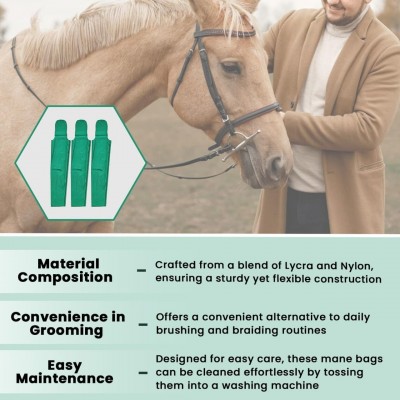 Ranch Hand Horse Mane Bags – Protect manes from wind, sun, and mud – Prevent tangles, chafing, and breakage – Made of nylon – Easy to use and wash – Set of 6 (Green)
